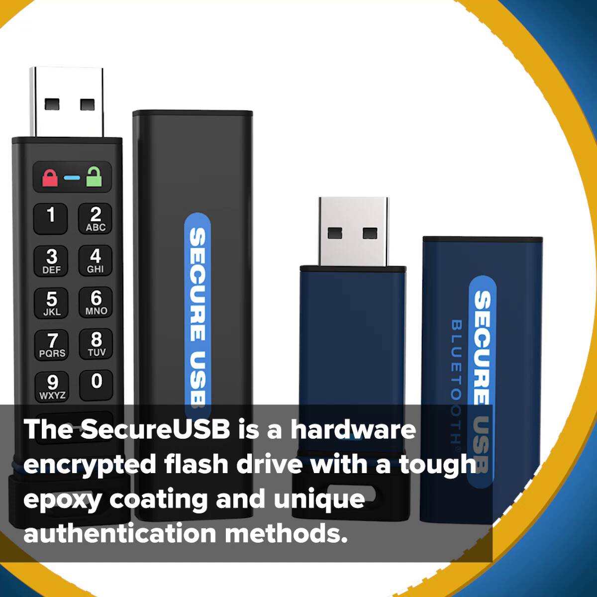 The SecureDrives and SecureUSBs require authentication through a complex PIN or a mobile device with the option of authenticating through fingerprints or facial recognition. The devices themselves are hardware encrypted and are built with an epoxy coating, bolstering their physical security.